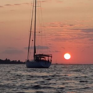 Morning Star er en Jeanneau Sun Odyssey på 52,2 fod fra 2004. Båden er udstyret med rulleforsejl og rullemast til storsejlet. Der er en kraftig motor på 110 hk om bord, som kommer til nytte, når vinden ikke er til stede. Cockpittet er rummeligt med to store rat, et stort klappespisebord og en targabøjle bagpå, hvor vores solcellesystem og gummibåd er placeret. Vi har en fast tagkonstruktion over cockpittet, så solen aldrig er et problem.